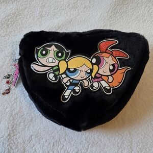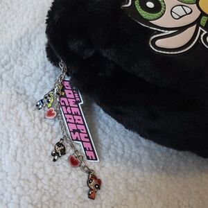 "Cuz they’re going full throttle. This PowerPuff Girls backpack has a heart faux fur construction, a detachable hood, a graphic printed trim, a zipper with PowerPuff Girl charm, adjustable shoulder straps, inside pockets, and PowerPuff embroidered vinyl with rhinestones."