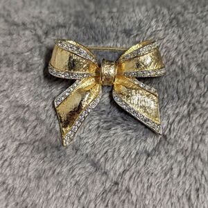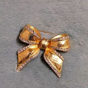 Vintage 1980's Goldtone & Rhinestones Bow Brooche