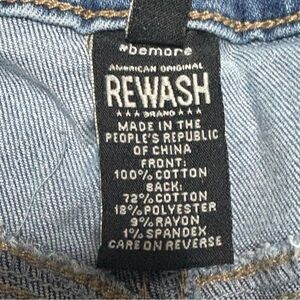Trendy distressed jean shorts by Rewash. Perfect for casual wear. Features a classic blue hue. Please see photos for measurements