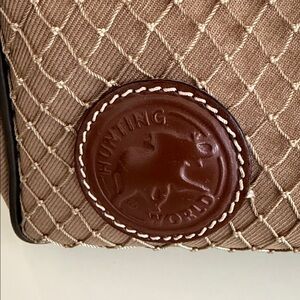 Elegant brown leather bag by Hunting World. Features a classic design with durable construction. Ideal for versatile use.