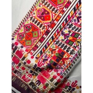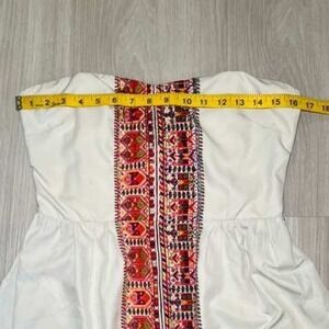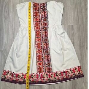 Roxy White Strapless Smocked Top Embroidered Tribal Border Dress L G G