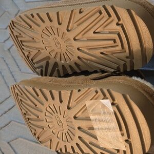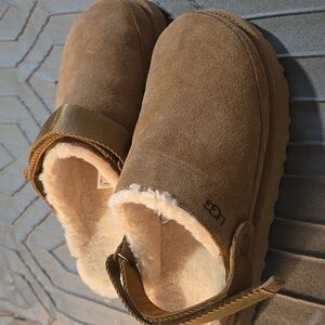 Cozy UGG slip-ons with soft shearling interior. Stylish tan exterior.