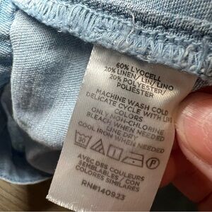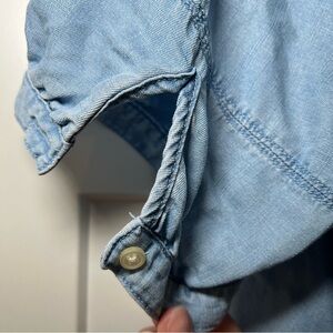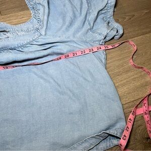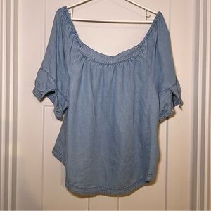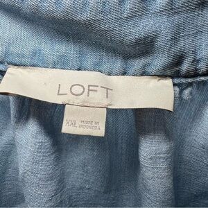 Loft Women's Blue Square Neck Puffed Sleeve Pleated Denim Blouse Size XXL