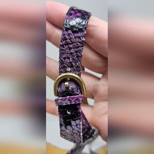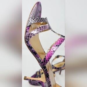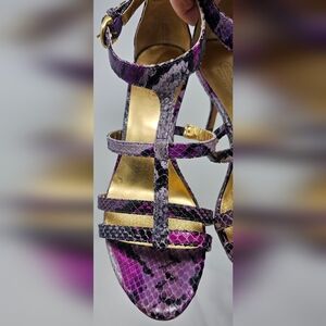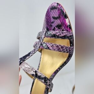 Coach Hayden Leather Violet Pink Blk Python Print Open Toe T-Strap Heels Size 7B