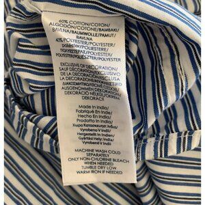 Chaps men's easy care short sleeve shirt in size XL. Cotton/polyester blend fabric. Blue and white pin stripe print. Buttons down the front. Chest pocket with embroidered Chaps logo. Excellent preowned condition. Photos are part of the description, please zoom in for more details.