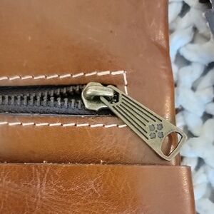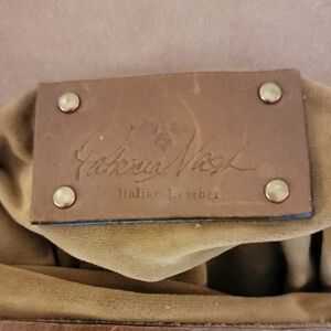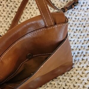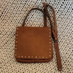Patricia Nash Italian Leather. Elegant crossbody bag with stylish mixed-metal studded accents. Classic congac brown. Perfect for any occasion.