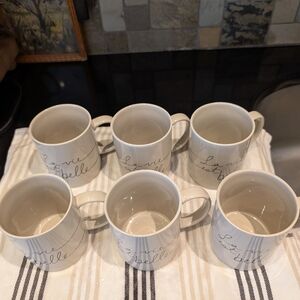 La Vie Est Belle - Life is Beautiful Purchased from Simons. In excellent shape, no cracks or chips. No longer available at Simons. Measures 3" diameter/3.5" height. Price is for 6 mugs.
