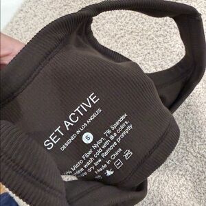 Stylish ribbed sports bra by SET Active. Offers a comfortable fit for active days.