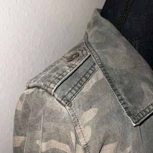 Lucky Brand Women’s Green Camo Print 100% Cotton, Long Sleeve Lightweight, Blouse Top Shirt NWTs. Size: Medium Button down, 2 pockets. Layer or wear as a jacket. NEW WITHOUT TAGS!!