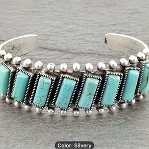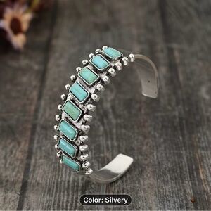 Timeless Retro Western Cuff Bracelet Set - Bold & Eye-Catching Boho Design with Genuine Turquoise Stones - Unique 8-Piece Collection for Unforgettable Style.Elegant silver bracelet featuring stunning turquoise stones. Perfect for adding a touch of color to any outfit.