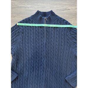 LL Bean Sweater Full Zip Men’s Sz 1X Holiday Cable Knit Blue 100% Cotton 251834