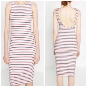 Zara Striped Sleeveless Bodycon Midi Dress Size Medium Casual Summer Stretch