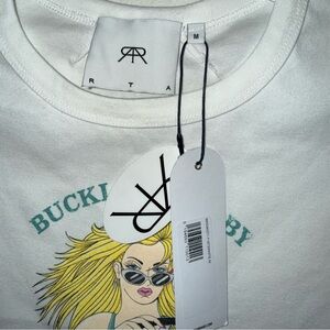 NEW RTA Buckle Up Baby Blonde White Green Graphic Tee Medium