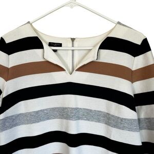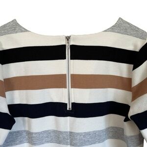 Talbots Textured Striped Zip Back Top 3/4 Sleeve Medium Petite