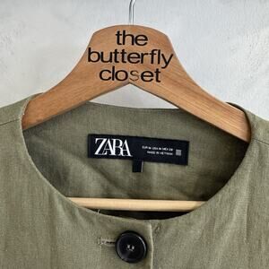 Zara linen blend cropped jacket in an olive Green Medium 11-3043