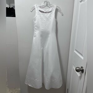 Beautiful preloved gown from Romantic Bridals featuring delicate beadwork and classic bridal elegance. The bodice has soft beaded embroidery, and the skirt is layered with tulle underneath for gentle volume and flow.