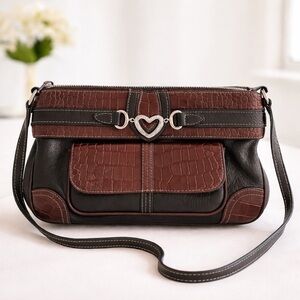 Brighton Leather Croc Embossed Crossbody Bag Black Brown