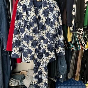 Beautiful, lace blazer and pants in shades of blue. Polyester. Blazer XL, pants L. NWT.