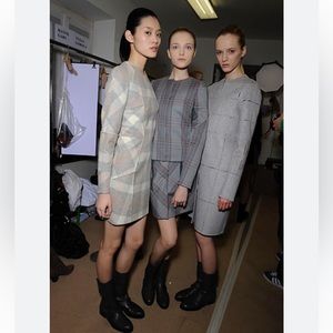 Elegant mini dress with a plaid pattern. Long sleeves and tailored fit. Perfect for chic occasions.