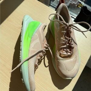Lululemon size 8.5 EUC barely used “blissfeel”athletic shoes. Beige upper with vibrant neon green accents. Ideal for active lifestyles.
