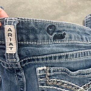 Stylish straight leg jeans by Ariat. Comfortable fit with a classic blue wash. Ideal for everyday wear. They are in really good condition with the tiny rip as shown in the picture.