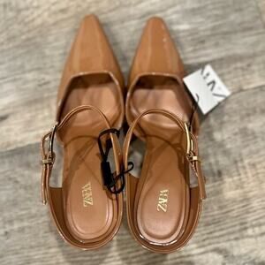 Gorgeous beige/nude faux patent leather heels from ZARA. Chic pointed toe, elegant buckled strap, and sleek high-stiletto silhouette. Perfect for events, work, nights out, or elevating any outfit. Brand new with tags, Size US 7.5 (EUR 38).