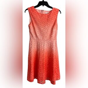 Studio One Coral Lace Fit & Flare Dress Size 4 Sleeveless Floral Overlay