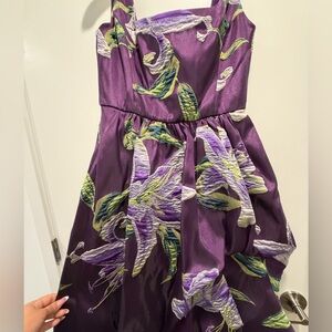Embrace elegance with this chic purple floral high low dress. Perfect for any occasion, it offers a sophisticated look with a floral twist. Purchased for a birthday but didn’t wear.