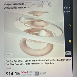 😻 Engaging cat toy with four levels. Includes 3 white balls and a top spinner for interactive play. 😻