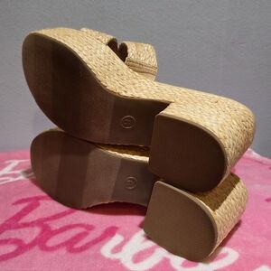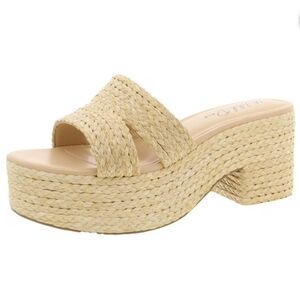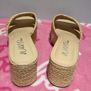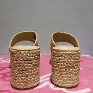 Wild Pair Women's Nifty Natural Raffia Heeled Slip-On, Size 9M. NIB. Picture #5 on the left shoe shows where the raffia may have got touched by something sharp.