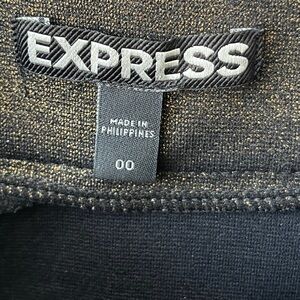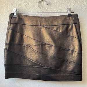 Metallic gold bandage mini skirt in size 00 from Express. The is woven with ample stretch and has a soft, subtle shimmer in the light.