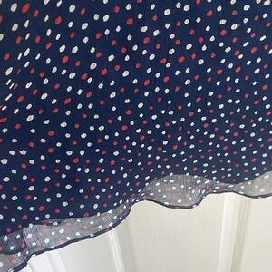 Elegant navy mini dress with charming polka dots. Ideal for casual outings. 100 silk