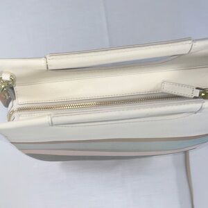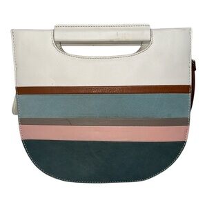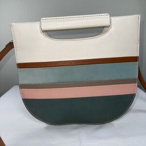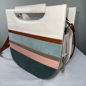 Fossil Hazel Leather Suede Crossbody Spring Stripe Multicolor Pink Blue White