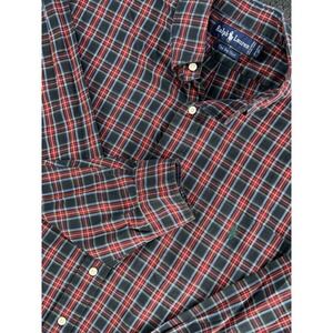 VTG Ralph Lauren The Big Shirt Plaid Button Down Shirt Red Navy Men's XL