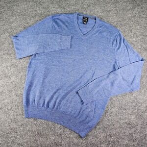 Jos. A. Bank Traveler's 100% Merino Wool V-Neck Sweater Heather Blue Mens XL EUC