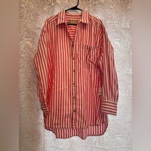We The Free by Free People coral & white striped swim cover-up, size Large, brand new with tags. Lightweight, relaxed, and perfect for layering over swimwear or styling open with shorts for an easy summer look.