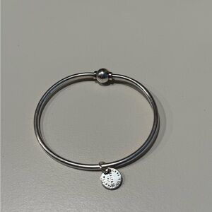 The ball twists to put bracelet on. It is sterling silver so you are able to wear it in the shower but hesitant around chlorine. Slight scratches from wear but not very noticeable. Bought from The Paper Store but I don’t wear it much anymore. Do not have original box.