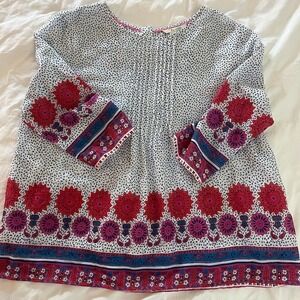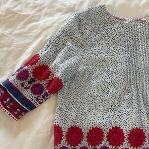 Boden Floral Border 3/4 Sleeve Sz 10 Lightweight Hippie Peasant Boho Blouse