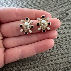Elegant CHANEL earrings with gold and black accents. Features intricate design with classic style.