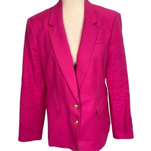 Vibrant pink blazer. Double-breasted design. Perfect for a bold statement.