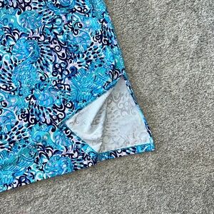 Lilly Pulitzer Malin Midi Dress in Light Aqua Spritz. Stylish blue and white patterned dress. Perfect for casual outings. V neck. Short sleeves. Side slits. Laying flat approx 40” shoulder to hem, 15” pit to pit. 93 rayon 7 spandex. Size XS. Excellent condition.
