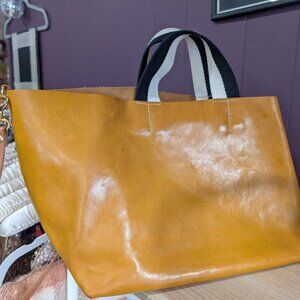 Clare V. Bateau Tote Bag Tan Black White Handle Strap Medium Crossbody Leather