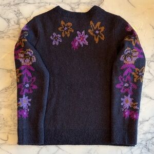 EUC & OTHER STORIES Floral Jacquard Sweater Metallic Thread Detail M Plum Purple