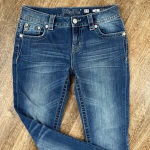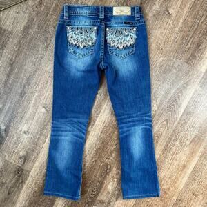 Miss Me Jeans Bootcut Medium Wash Jeweled Pockets Embroidered Gold Flowers