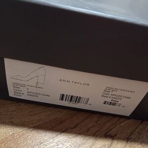 Super cute Ann Taylor block heel pumps in a gorgeous neutral “Spiced Chai” color with a classic black cap toe 🤎🖤
