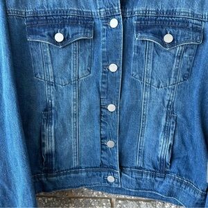 This traditional jean jacket takes on a new vib with it's faux leopard long fringe. It features a button front, two flap chest pockets and two lower vertical side entry pockets. The leopard fringe is placed across the back and down the sleeves.