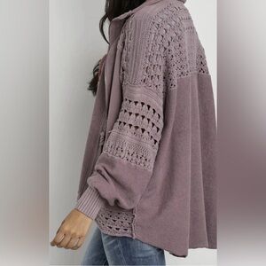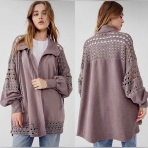 NWT Free People S Dune Bug Cardi in Elderberry Purple Crochet Zip Up New $168