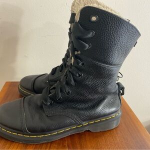 Doc Dr. Martens Amilita Sherpa LinedFold Down Combat Leather Boots Size 9 US