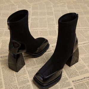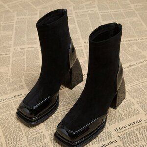 Black Elegant Women's Waterproof Platform Heel High Boots
