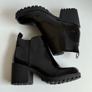 Dirty Laundry Black Patent Chunky Block Heel Chelsea Boots Size M